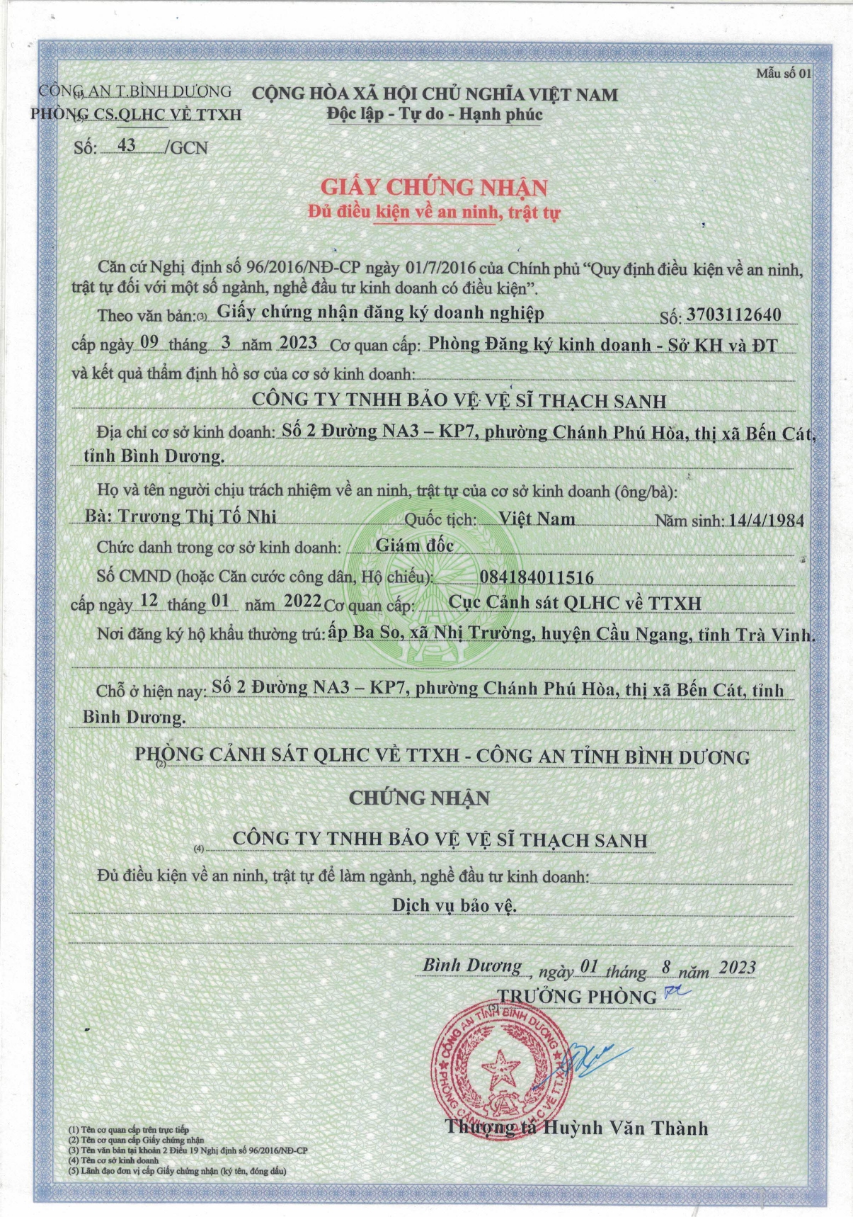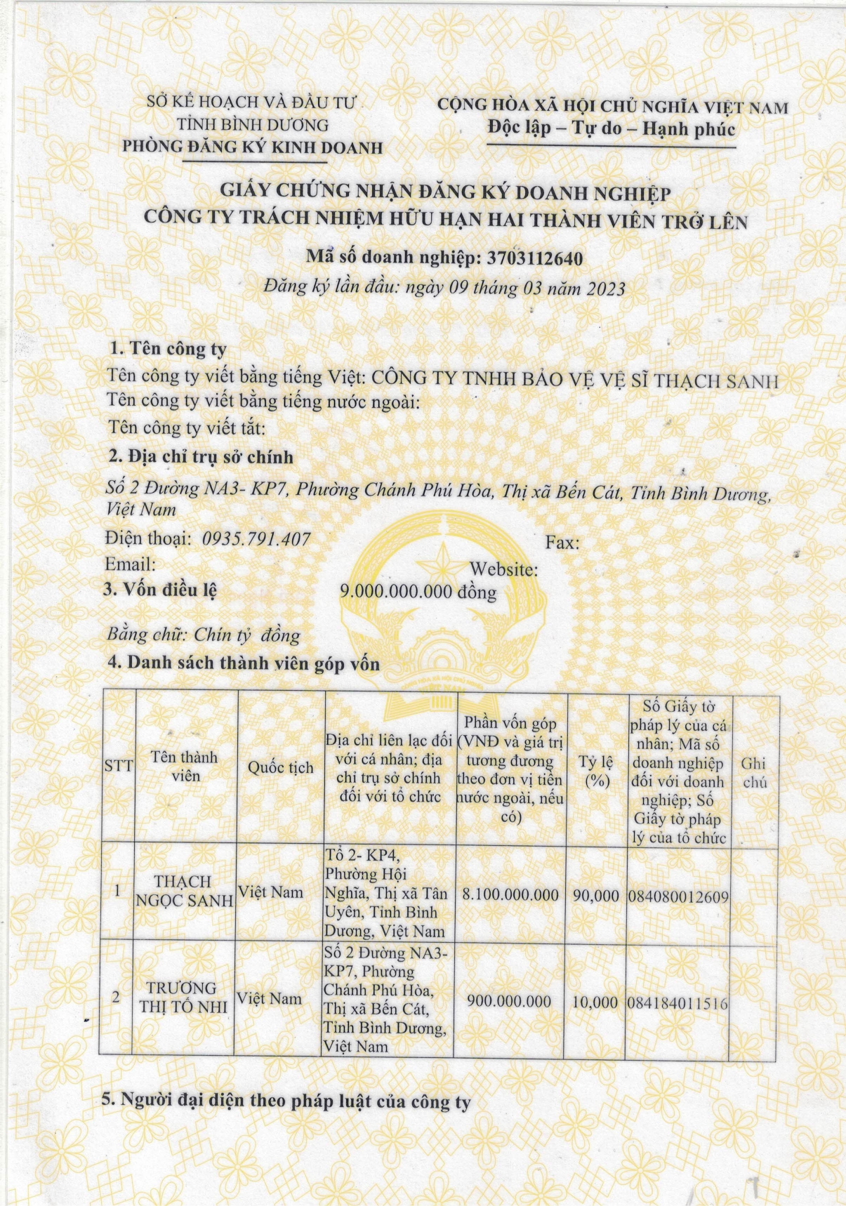 Tên công ty: CÔNG TY TNHH BẢO VỆ VỆ SĨ THẠCH SANH